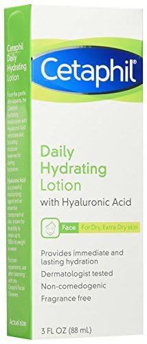 Details: CETAPHIL Daily Hydrating Lotion with hyaluronic acid provides immediate and intense 24 hour hydration for combination skin. This face lotion contains a combination of powerful moisturizing agents, including hyaluronic acid, to rehydrate the skin and lock in moisture for instant hydration. The lightweight formula is ideal for use under makeup and is non-comedogenic, providing long lasting hydration without clogging pores, making it suitable for acne prone skin. Hypoallergenic and with no added fragrance, this daily lotion is dermatologist tested and clinically proven to be gentle and non-irritating, even for the most sensitive skin.