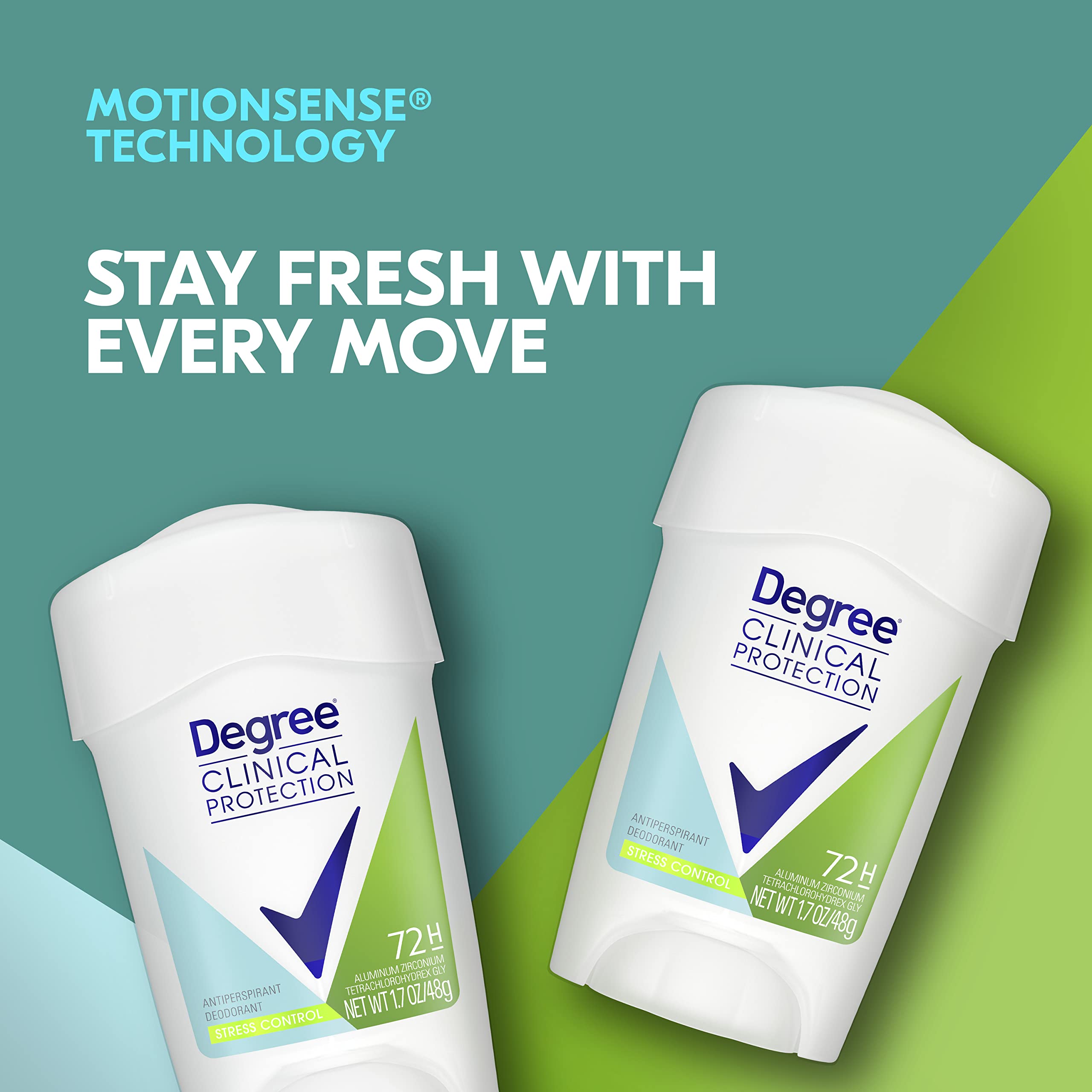 - READY FOR WHAT’S NEXT: Take on the day with Degree Clinical Protection Stress Control Antiperspirant Deodorant Stick. Simply twist, glide, and move with confidence