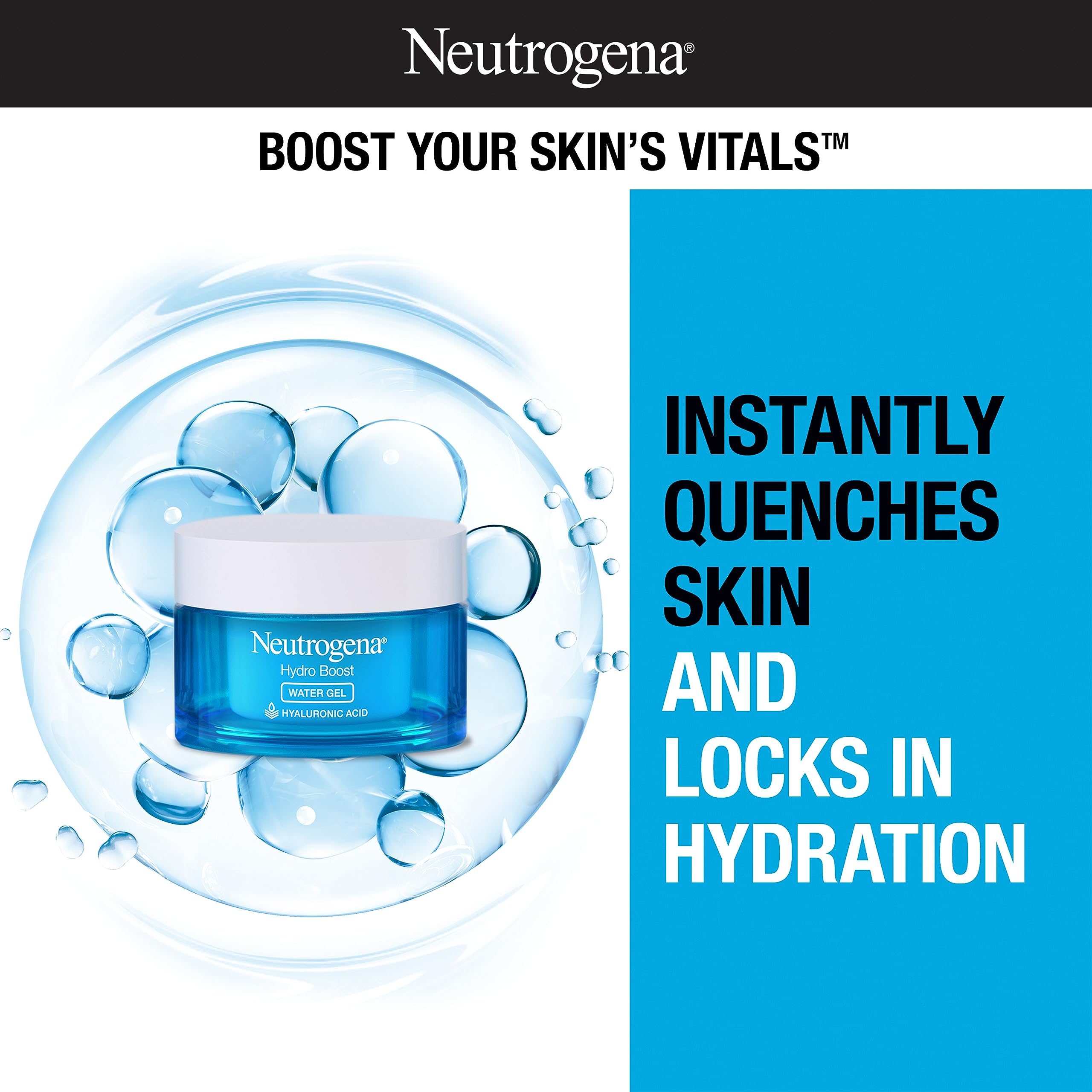 - Packaging may vary: 1.7-ounce jar of Neutrogena Hydro Boost hydrating water-gel daily face and neck moisturizer with hyaluronic acid to hydrate dry skin